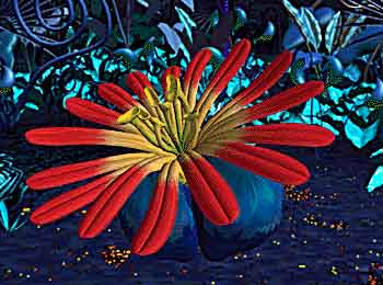 It breaks "Tahkois"-stones split open, it has shiny flowers, like a great blossoming chrysanthemum